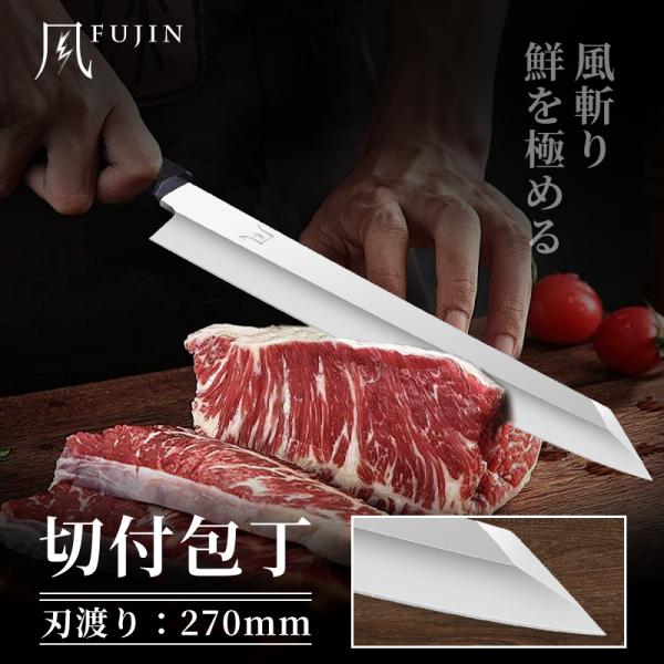 送料無料 即納 風刃 切付包丁 9寸 V金10号 刺身包丁 和包丁牛刀 黒檀黒水牛角八角柄 刃渡り270mm 硬度約HRC61 刃幅 37mm 厚み 4.3mm NK25A07