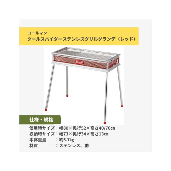 コールマン(Coleman) クールスパイダーステンレスグリルグランデ レッド 1709430 大型コンロ アウトドア キャンプ BBQ バーベキュー