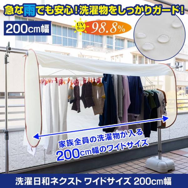 洗濯物保護カバー 洗濯日和ネクスト 超ワイド 幅200cm ベージュ 洗濯物カバー 雨よけ 花粉よけ 洗濯 目隠し ベランダ 黄砂 虫除け UV 屋外 梅雨対策