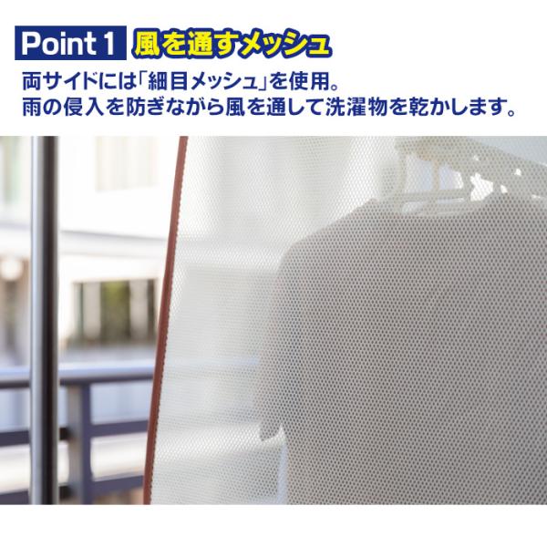 雨の侵入を防ぎながら風を通して洗濯物を乾かします。