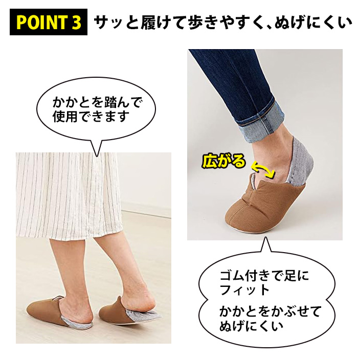 通常は柔らかく履きやすいデザインで、毎日の生活を快適にサポート。