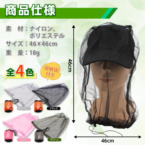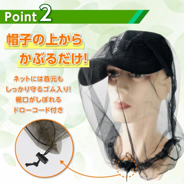 ツバの有る帽子の上からかぶるだけで嫌な害虫から顔や首を守ることのできる虫除けネットになります。
