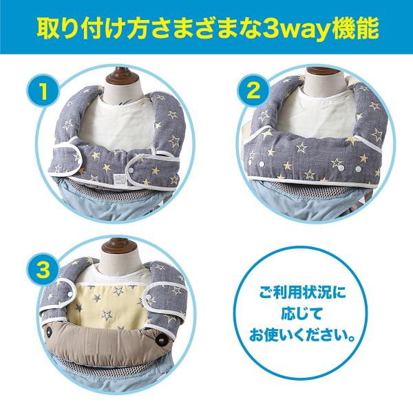 また、抱っこ紐の他にベビーカーやチャイルドシートなどにもお使いいただけます。