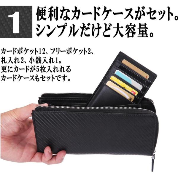 Legare レガーレ 長財布 メンズ レディース カードケース付き L字ファスナー 本革 カーボンレザー コインケース 小銭入れ