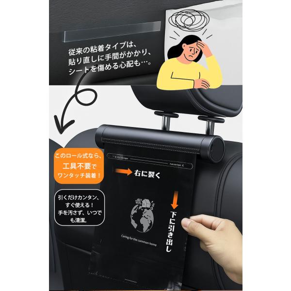 【車内スッキリ!】車用 ゴミポケット ローラー式 ゴミ袋 40枚入 簡単取付け 収納便利 車載 隠し 省スペース ロール式 車載ゴミ袋 ビニール袋 エチケット袋 防水