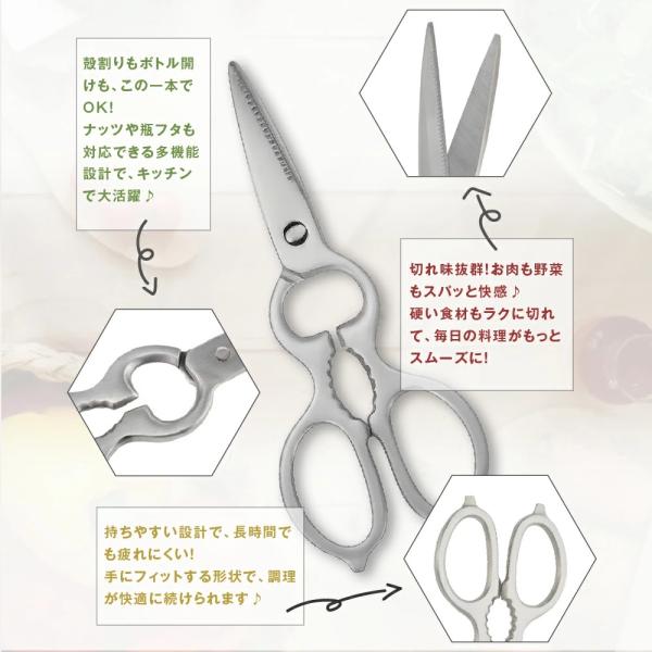 肉 魚 骨切り 野菜カット 海苔カット 多機能はさみ 缶開け機能