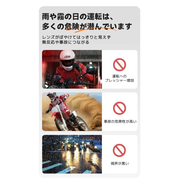 【驚異の耐久性で視界をキープ】一般的な曇り止めシートでは表面の防曇コーティングに付着した水分子が飽和状態になると、水分子の拡散能力が極端に低下し曇り始めます。当社の曇り止めシートは特殊な分子結合により表面に付着した水分子を随時拡散していくので、使用中に曇ることはほとんどありません。