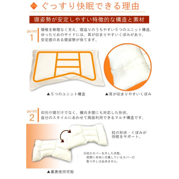 頸椎を無理なく支え、寝返りのうちやすい5つのユニット構造。