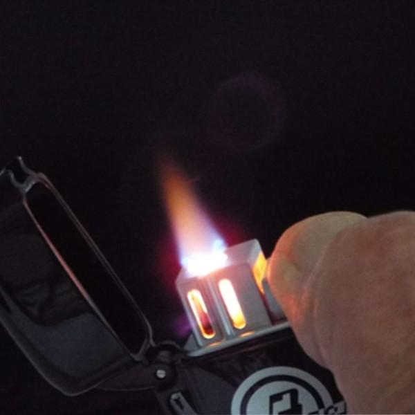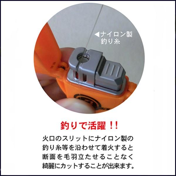 ・火口のスリットにナイロン製の釣り糸を沿わせて着火すると