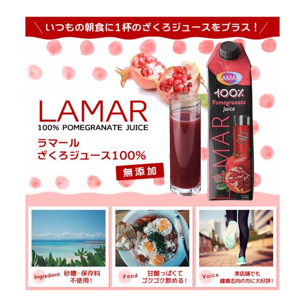 ザクロジュース 無添加 ざくろジュース 100% ラマール 1000ml 12本 送料無料 1L 1,000ml カワタキ