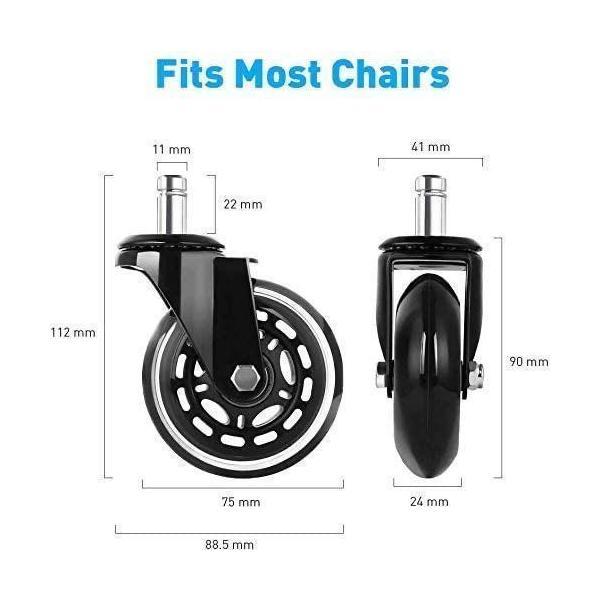 差し込み穴が直径11mmであれば、どんなチェアにも対応します。例:オフィスチェア、ゲーミングチェア、ショッピングカート、医用ベッドなど。