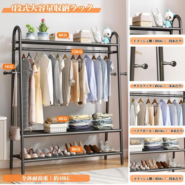 ハンガーラック パイプハンガーラック 洋服ラック 大容量 衣類収納ラック 防サビ 防水 耐腐食性 耐荷重40kg 洋服掛け ラック