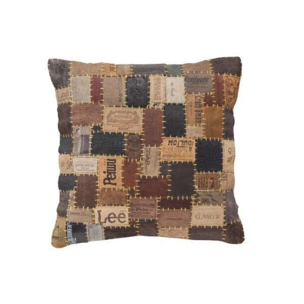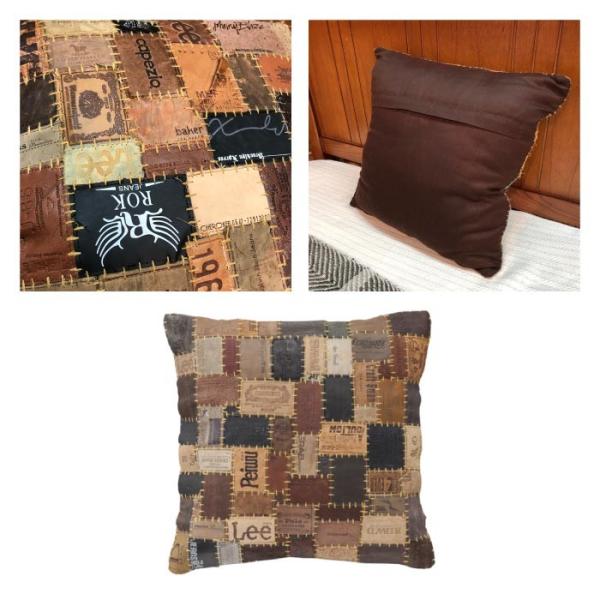 クッション パッチワーク ハンドメイド レザー おしゃれ かっこいい デニム 本革 正方形 ファブリック ソファクッション 中綿付き TTC-331C