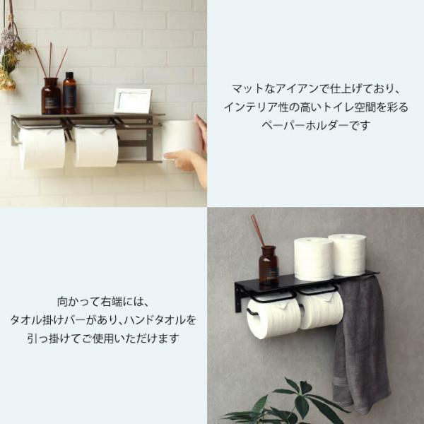 トイレットペーパーホルダー おしゃれ 2連 収納 タオル掛け