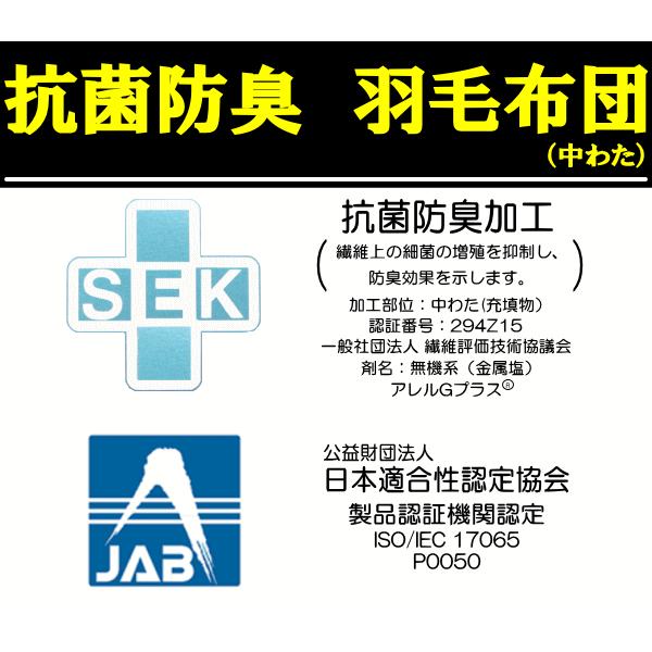 羽毛布団 シングル アレルGプラス SEK 抗菌防臭 消臭 抗ウィルス 日本製