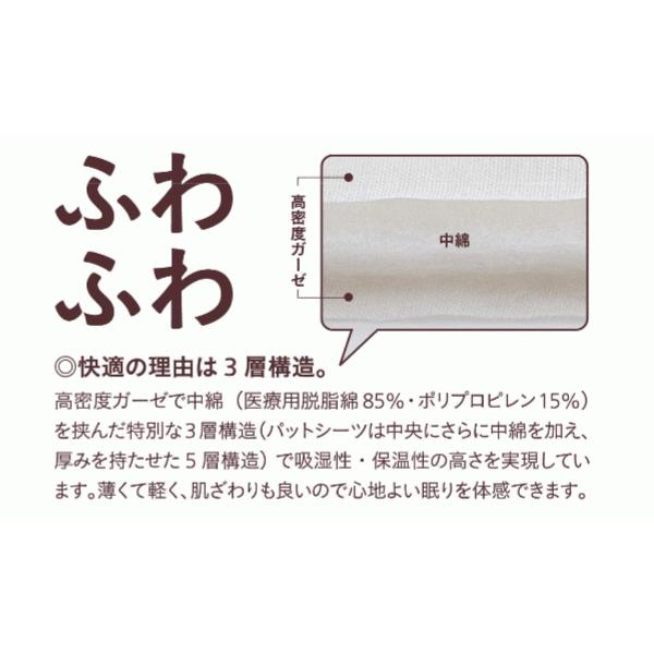 【送料無料】 一年中快適な眠り、洗濯お手入れは簡単、しかも赤ちゃんがなめても大丈夫な安全性。世界で唯一、ガーゼと脱脂綿でできた本当に不思議なガーゼキルト敷きパットシーツ。年中気持ち良く一晩使うともう手放せない快眠肌敷寝具です。