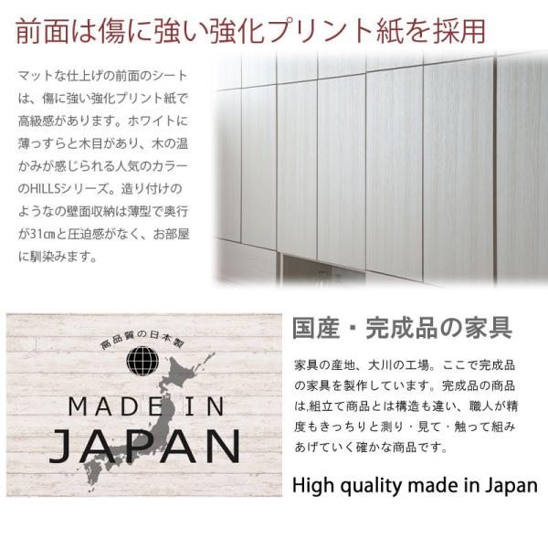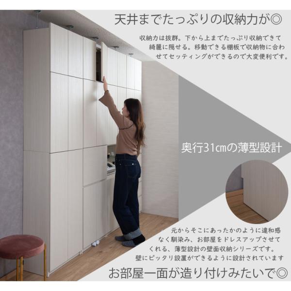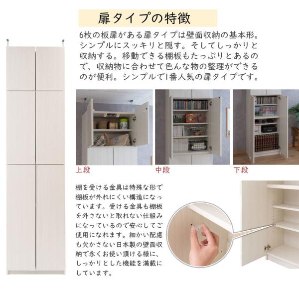 薄型壁面収納 扉タイプ リビング収納 壁面ラック 突っ張り 本棚 書棚 リビング収納 日本製 完成品