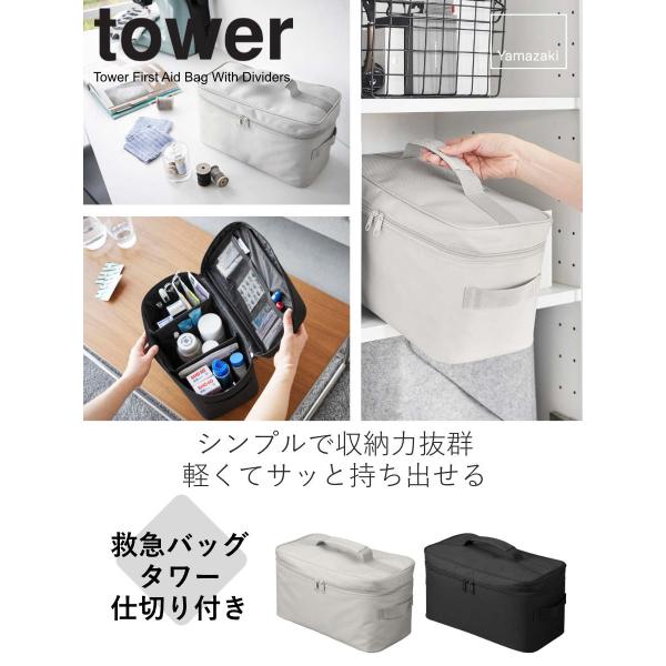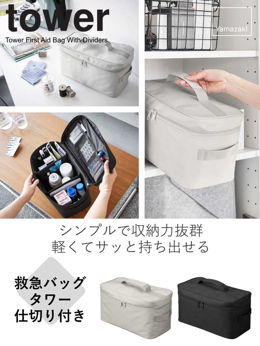 山崎実業 tower 救急バッグ タワー 仕切り付き ( 4903208018487 救急箱 薬箱 けが 応急手当 大容量 裁縫箱 ソーイングボックス おしゃれ 救急用品 )