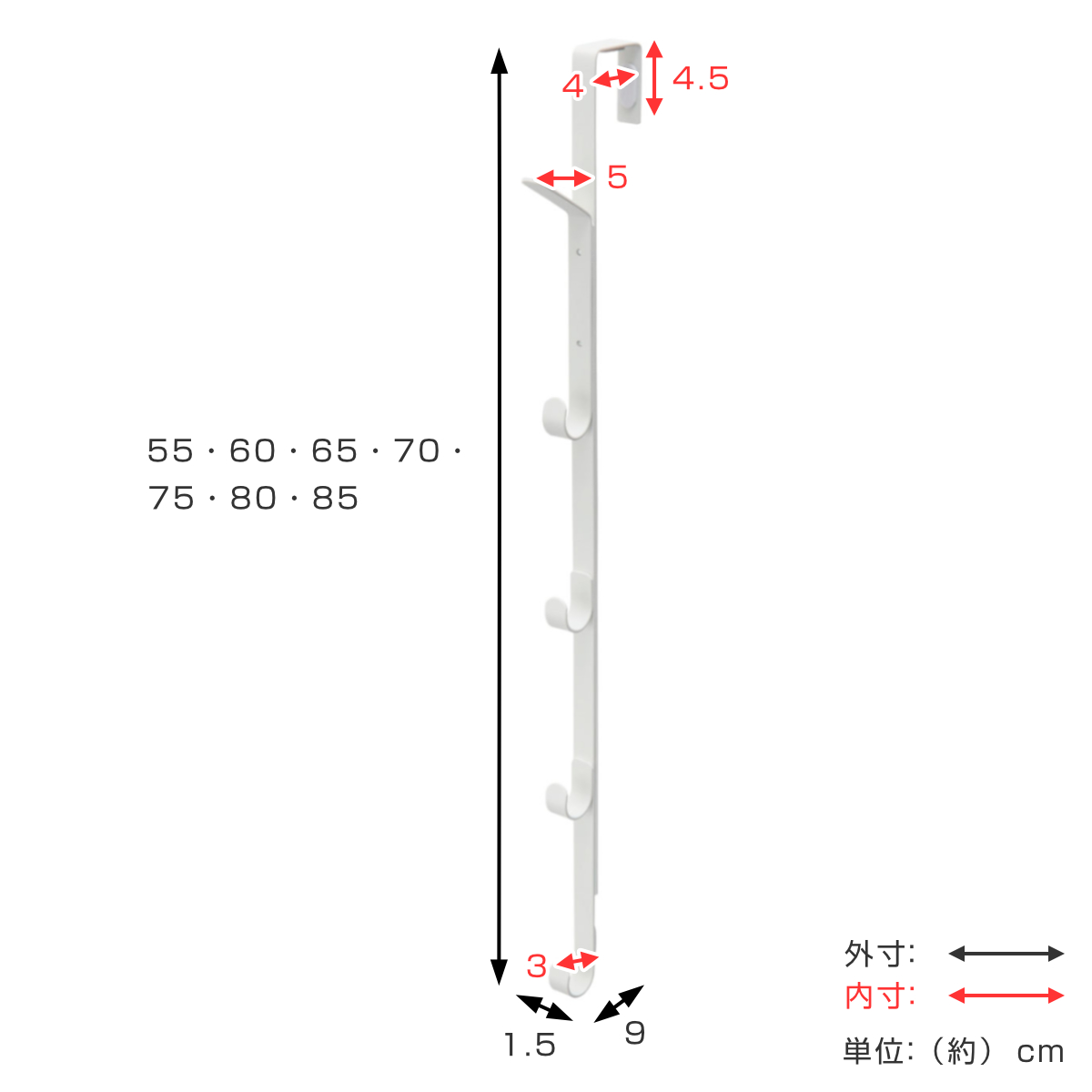 サイズ/約幅1.5×奥行9×高さ55・60・65・70・75・80・85cm