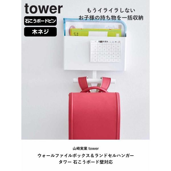 山崎実業 tower ウォールファイルボックス&ランドセルハンガー タワー 石こうボード壁対応 ( 4903208018654 タワーシリーズ ランドセルハンガー )