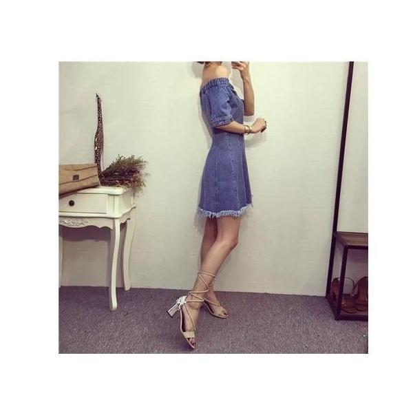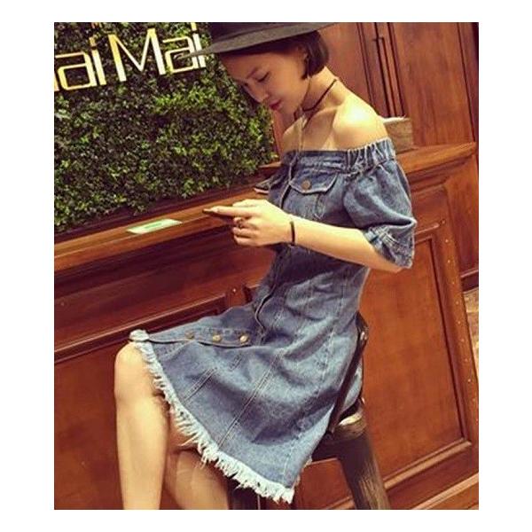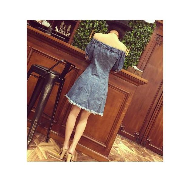 ワンピース チュニック ショート丈 ミニ丈 半袖 デニムワンピース オフショルダー デニム Aライン ミニワンピース 切りっぱなし 大人カジュアル 春夏 ワンピ