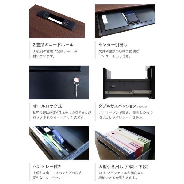 片袖デスク ブラック 事務机 事務用デスク ワークデスク パソコンデスク PCデスク オフィス デスク 机 学習机 OAデスク ビジネスデスク 引出し 事務用品 高品質 配線ホール