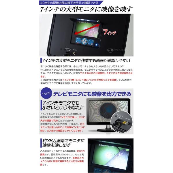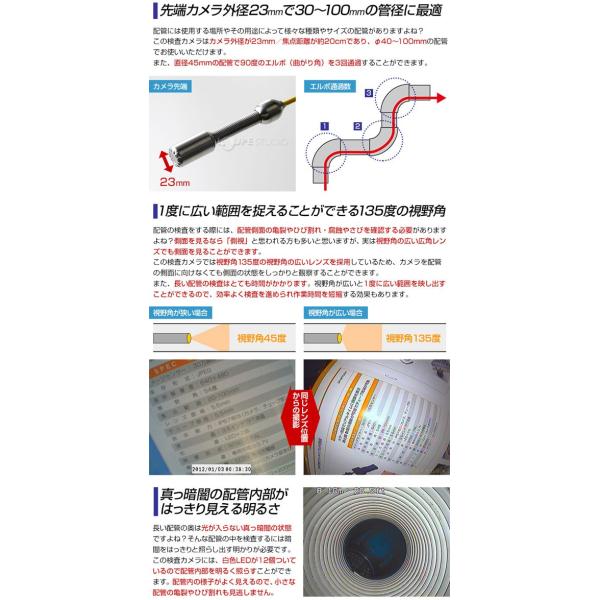 管内検査カメラ 20m 配管内部 カメラ 作業カメラ 点検 ケーブルカメラ 配管 つまり 3R-FXS07-20M おすすめ