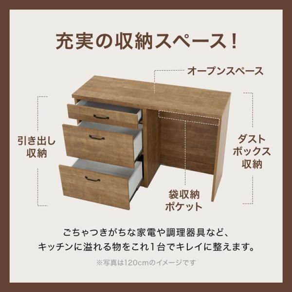 キッチン収納 キッチンカウンター ゴミ箱収納 棚 作業台 レンジ台 アンティーク調 日本製 引き出し 引き出し収納 おしゃれ 大川家具 組み立て簡単