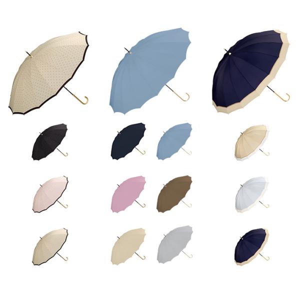 Wpc. 晴雨兼用傘 16本骨 ソリッド ピンドット 切継ライン かさ レディース 長傘 雨傘 晴雨兼用 ロング 送料無料