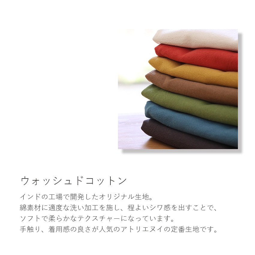 柔らかなウォッシュドコットンの素材感が心地良い。