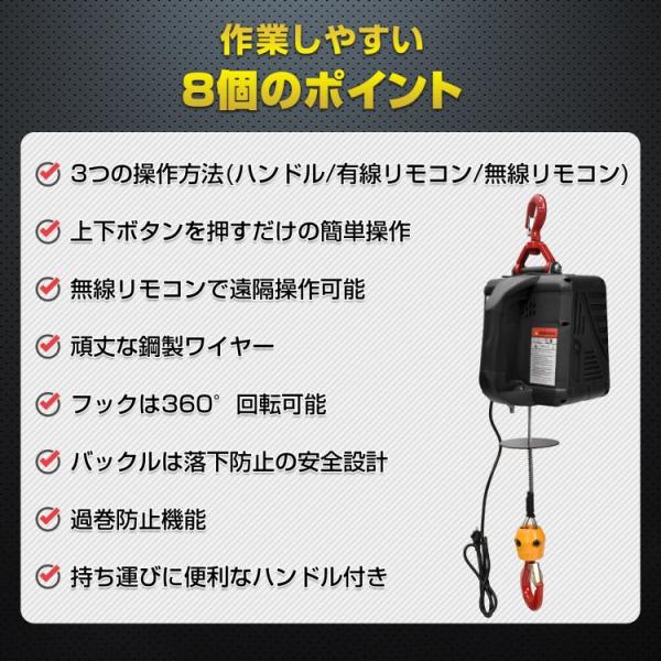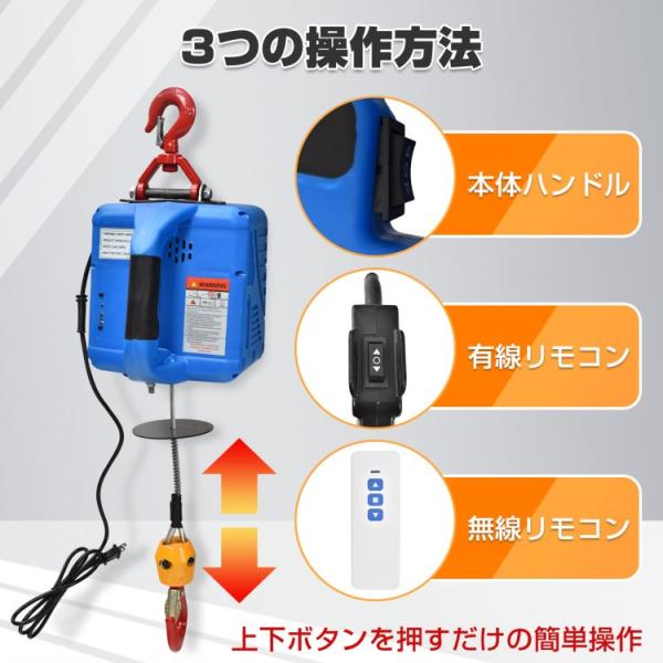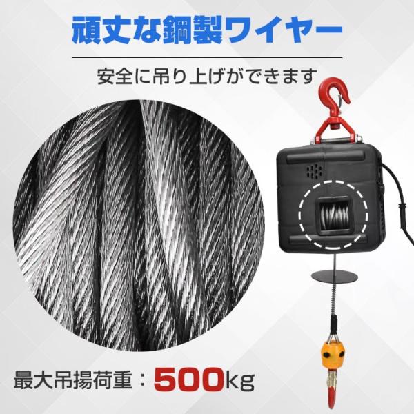 電動ウインチ 電動ホイスト 小型クレーン 巻き上げ機 吊り上げ能力500kg 1500W ハンドル 有線 無線 リモコン 過巻防止 sg149