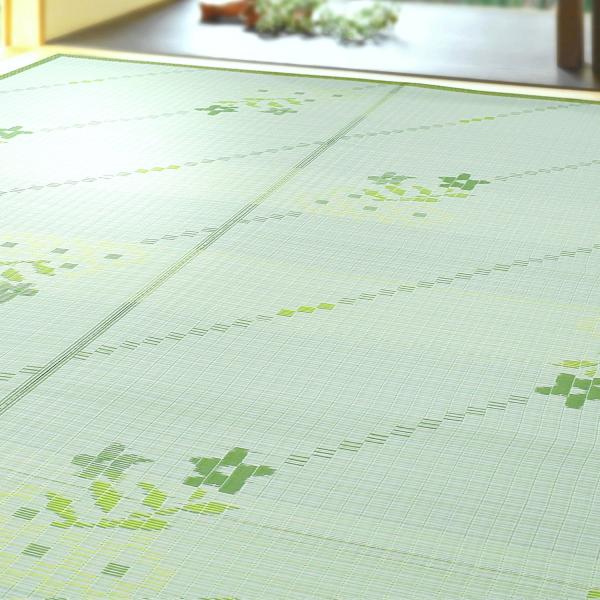 い草風カーペット 3畳 江戸間 174×261cm (小花) 洗える 上敷き PPラグ ござ 防炎 3帖