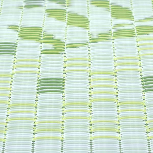 ポリプロピレンでできた細いストロー状のパイプで織り込んだい草風織物。
