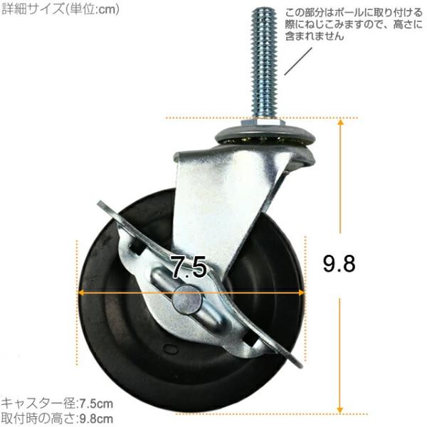 ルミナス ラック パーツ キャスター 2個 ゴムキャスター ポール径25mm スチールラック 足回り 車輪 コマ 収納 棚 シェルフ メタル 部品 高さ9.8cm IHL-GCL075