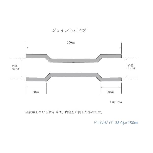 HMS ジョイントパイプ 差込径 38φ 全長 150mm 1.2mm厚 ワンオフ マフラー製作 汎用 カスタムパーツ SUS ステンレス 異径 サイズ変換 接続パイプ 拡管 溶接