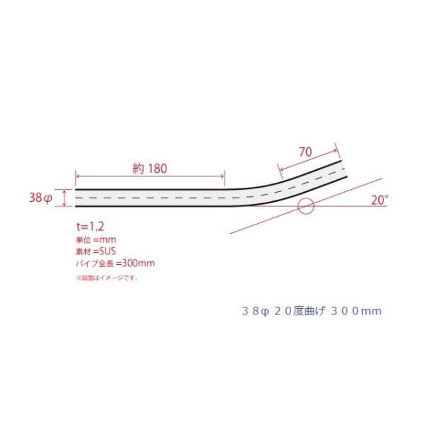 HMS 曲げパイプ 外径 38φ 20度曲げ 全長 300mm 80R ワンオフ マフラー製作 汎用 ステンレス SUS 曲げ カスタム フェンダー 材料 DIY 資材 バイク 車