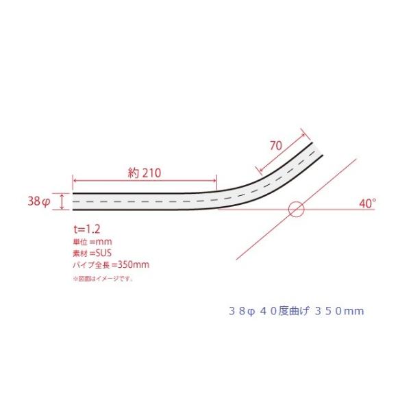 HMS 曲げパイプ 外径 38φ 40度曲げ 全長 350mm 80R ワンオフ マフラー製作 汎用 ステンレス SUS 曲げ カスタム フェンダー 材料 DIY 資材 バイク 車