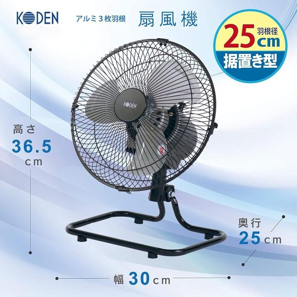 据置き型工業扇 CFF253DMA 広電 アルミ羽根 羽根径25cm 風量 3段階 アルミ コンパクト 扇風機 置き型 送風 室内 換気 ラウンドムーブ ブラック 工業扇 猛暑対策