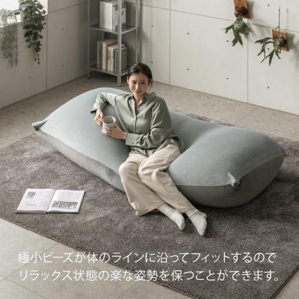 特大サイズのビーズクッション。マイクロビーズが体を優しく包み込む、快適な座り心地。カバーは洗濯可能で、いつも清潔に保つことができます。