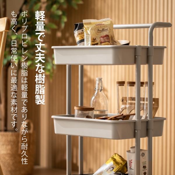 キッチンワゴン 3段 キャスター付き ストッパー付き 高さ調節 キッチン収納ワゴン 隙間収納ワゴン ランドリー収納ワゴン ランドリーワゴン トローリーワゴン