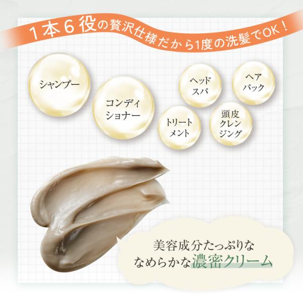 ●1本6役(シャンプー・コンディショナー・ヘッドスパ・トリートメント・ヘアパック・頭皮クレンジング)の贅沢仕様