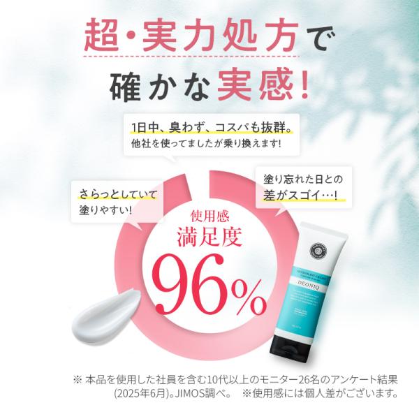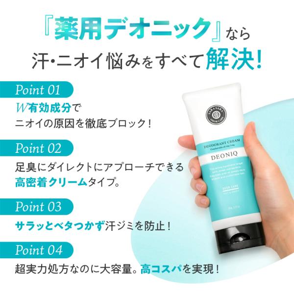 STEP2:適量を手に取り、ワキや足にすり込むように塗布してください。足は汗をかきやすい指の間に塗り込んでください。