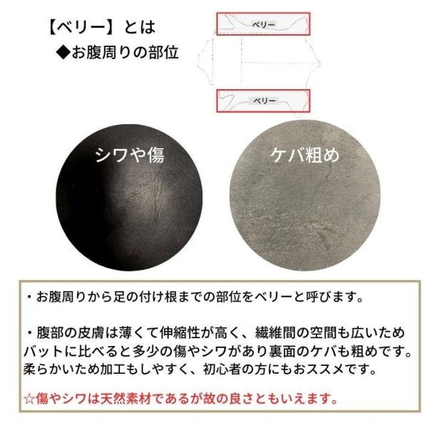 一枚革からカットした革で、しわ・キズ・汚れ・色むら・日焼けがあるものも含まれる場合や、裁断屑が混入している場合もございます。