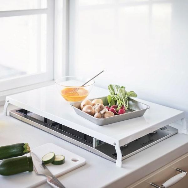 コンロの上をカバーして、ちょい置きスペースや作業台としてお使いいただけます。マンションやアパートなどの1口〜3口用のコンパクトタイプと、前後並びの2口ビルドインガスコンロや3口ガスコンロの上をまとめてカバーできるワイドタイプがあります。ご家庭に合わせてお選びいただけます。