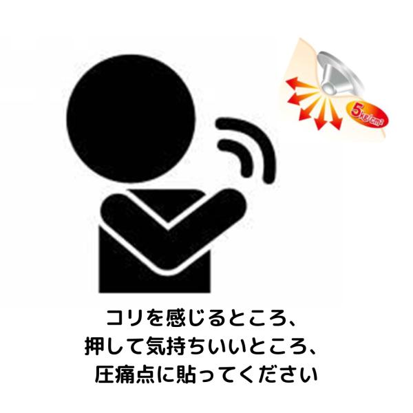 特徴的な突起が、ツボ刺激と筋肉の深層部への圧力を同時に与える構造で、まるで貼る鍼のように使えます。