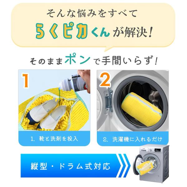 洗濯機に入れるだけ!靴と洗剤を入れて、洗濯機に入れるだけでお気に入りの靴が綺麗になります。
