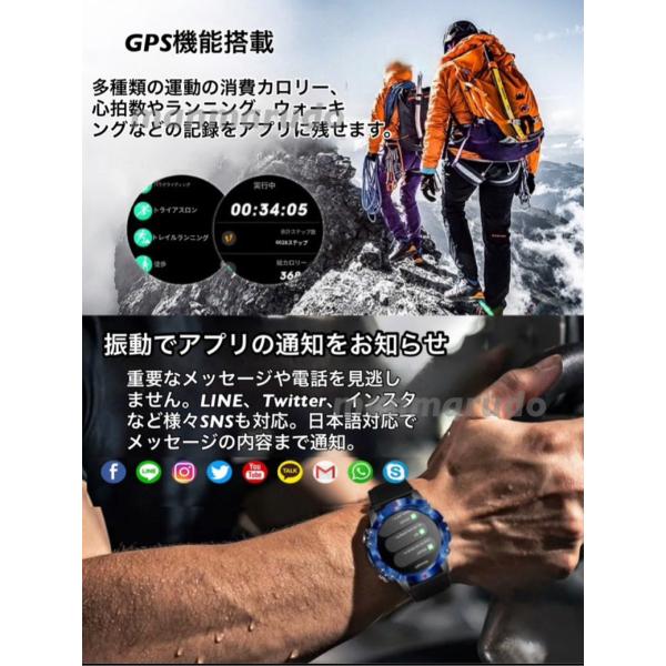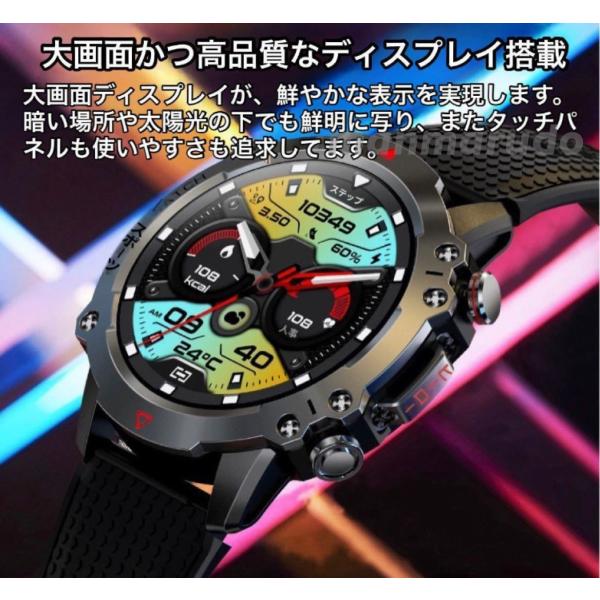 スマートウォッチ 軍用規格 通話機能 AMOLED 大画面 耐衝撃 高画質 line 通知 心拍数 血圧 血中酸素 歩数計 着信 睡眠 運動モード 音楽 防水 iPhone Android