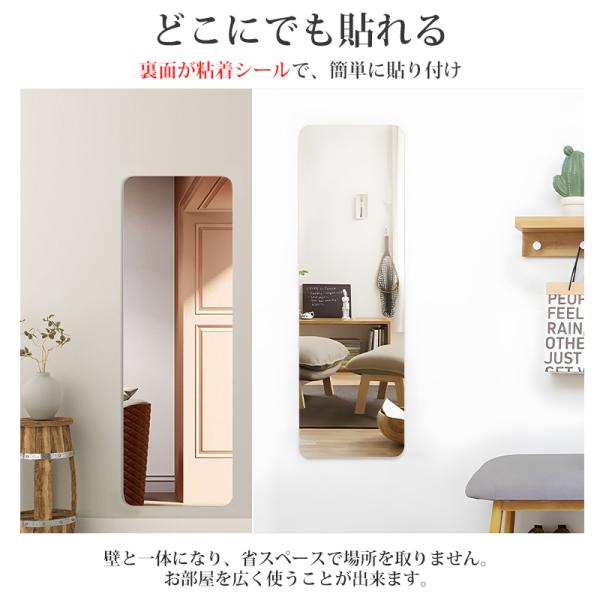 軽量 レイアウト自由 省スペース インテリア おしゃれ ミニマル 韓国風 ウォールミラー 貼る鏡 転倒防止 粘着シール 両面シール 粘着式 防災 軽量 壁掛 アクリル製 高精細 洗面所 洗面台 姿見 玄関