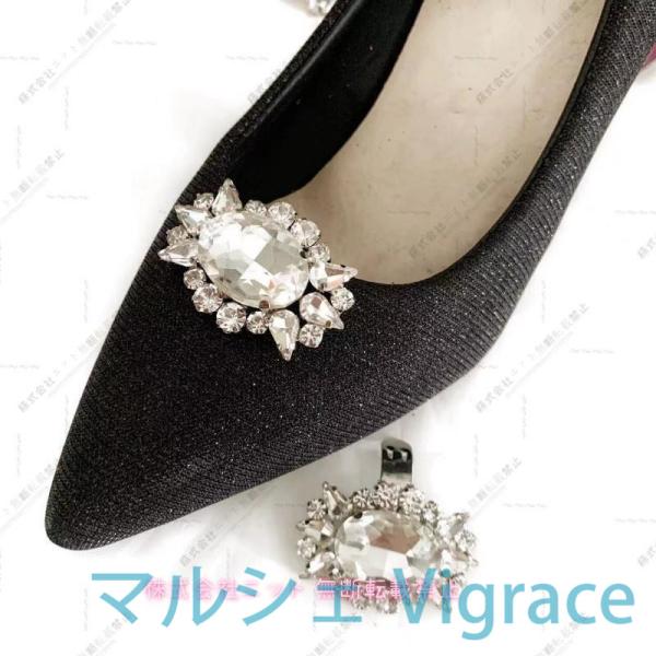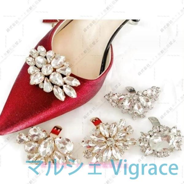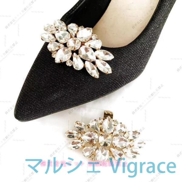 シューズクリップ 2個セット 1足分 両足用 パンプス シューパーツ レディース ラインストーン シューズアクセサリー 靴用クリップ ビジュー キラキ