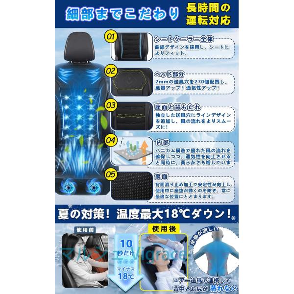 数量限定10%OFFクーポン配布中 車 シートクーラー クールシート 車用 USB給電 三段階風量調節メモリー機能 自動機能 アイスシルク素材 ハニカム構造 ドライブ